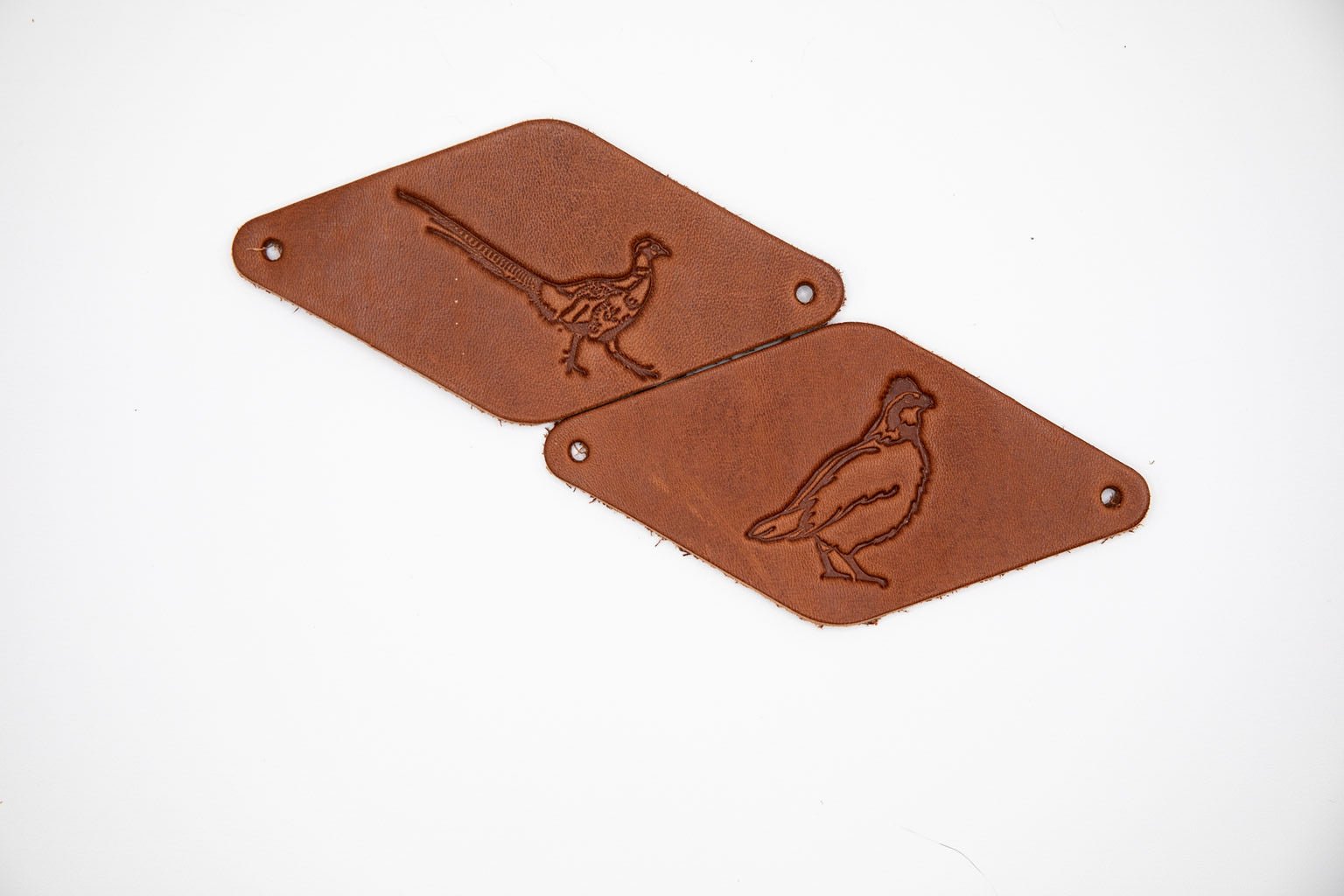 Customizable with straight badge with initials or diamond badge with Woodley Design library