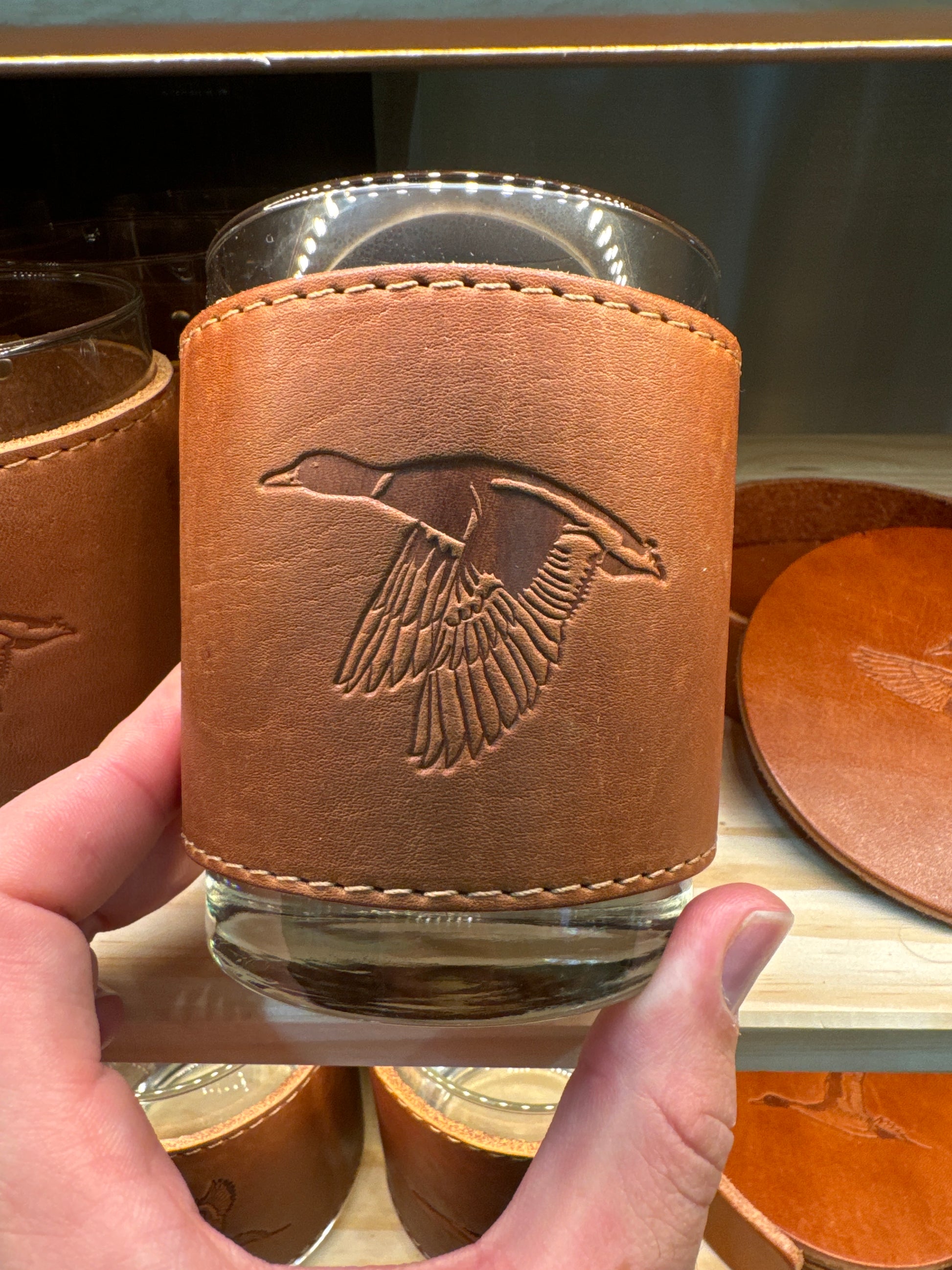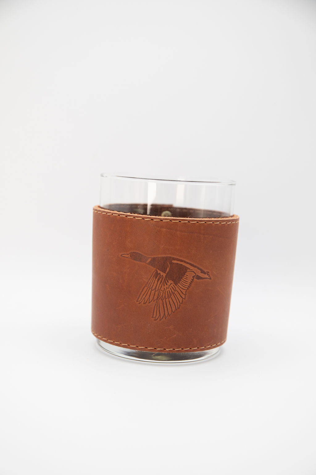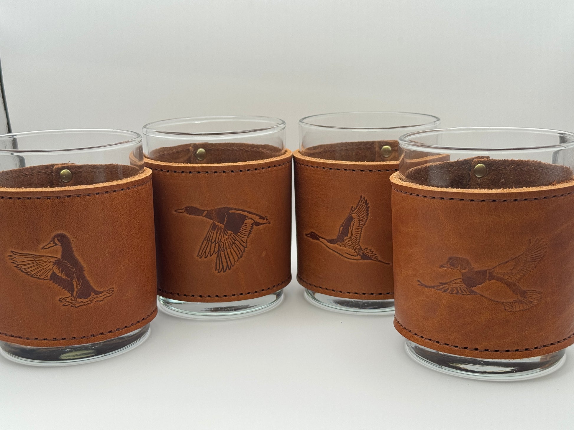 13.25oz rocks glasses with stitched leather cuff. Offered plain, monogrammed, or with one for our logos. Choose from a Pair or Set of Four.
