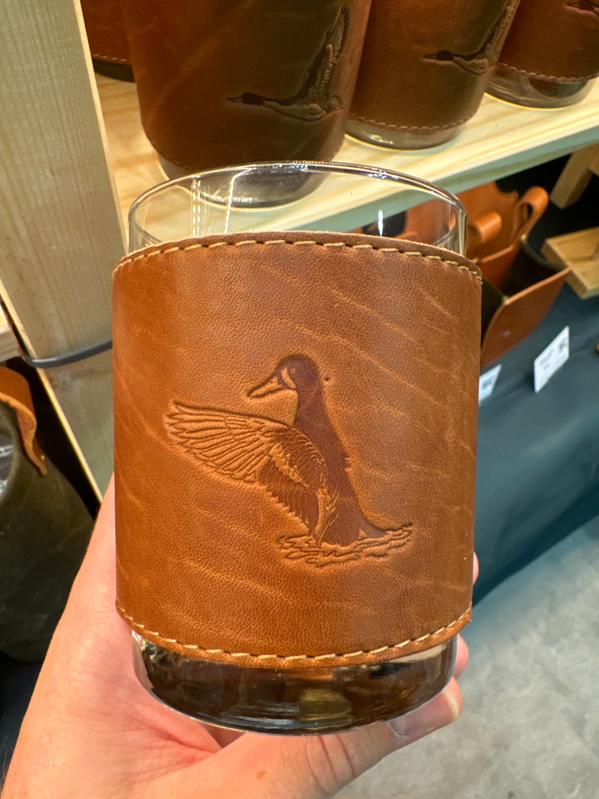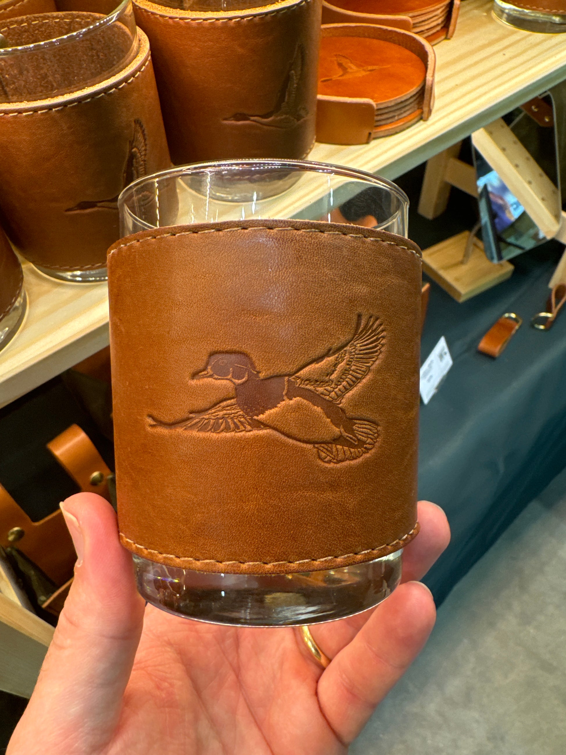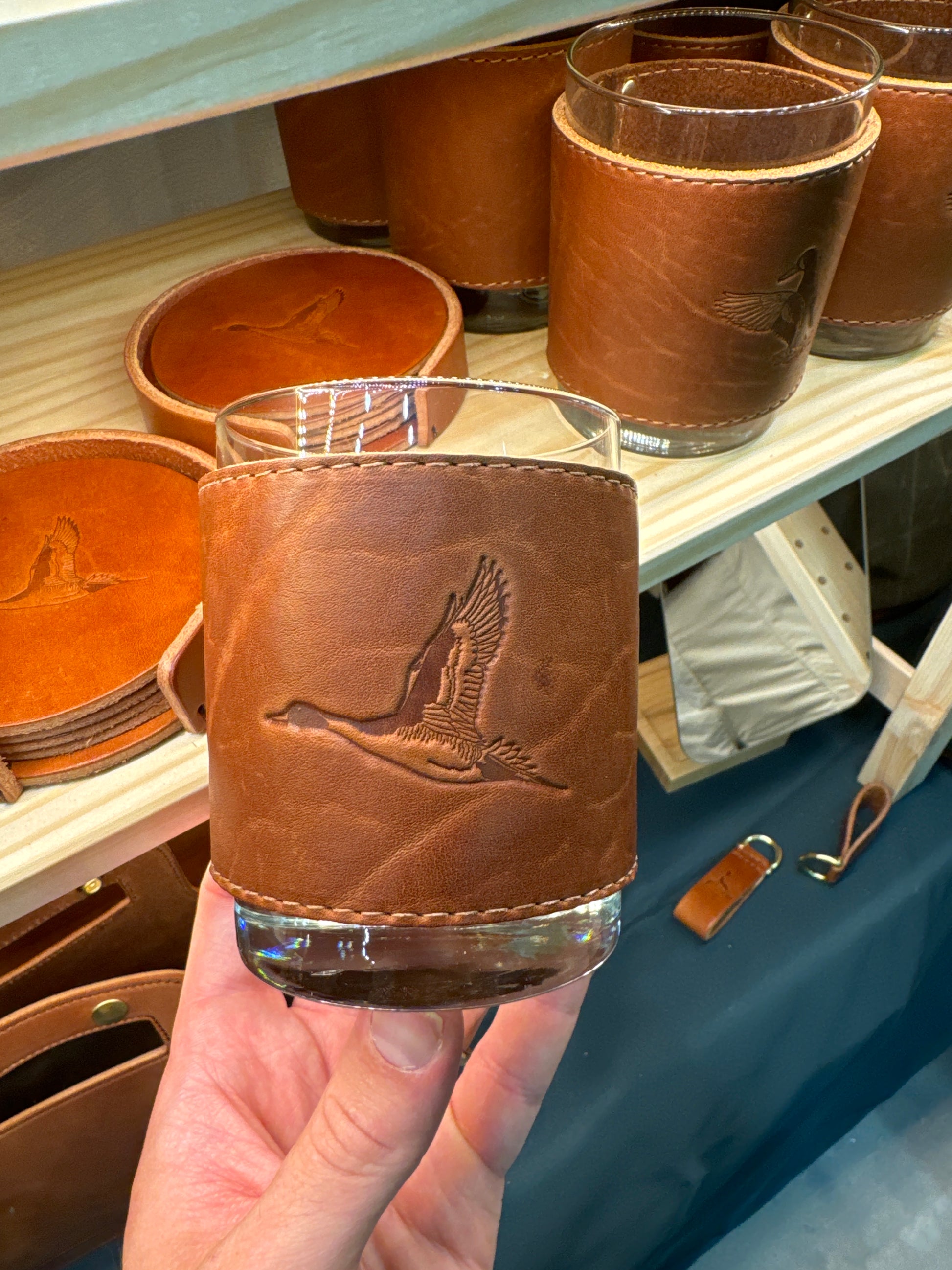 13.25oz rocks glasses with stitched leather cuff. Offered plain, monogrammed, or with one for our logos. Choose from a Pair or Set of Four.
